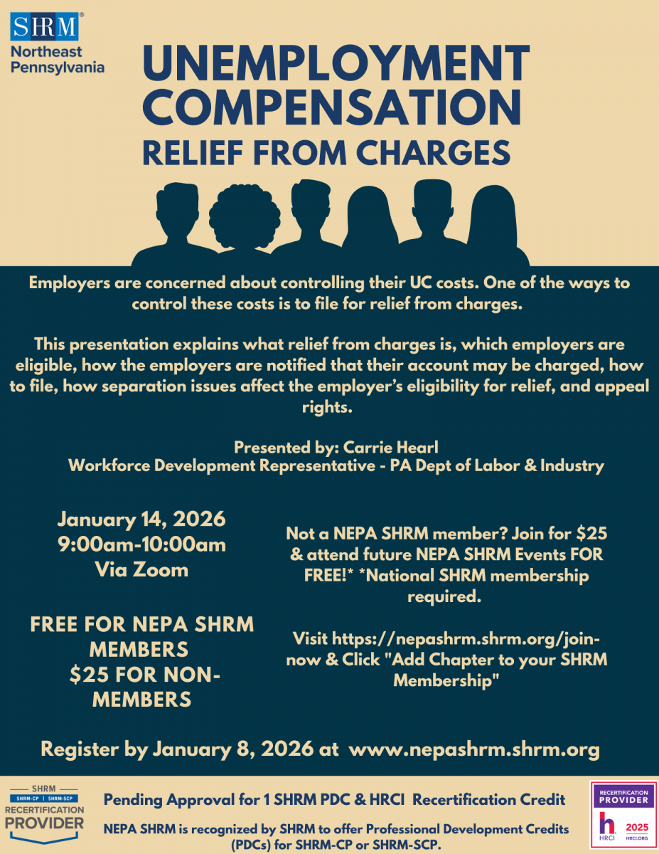 | Price: | FREE for NEPA SHRM Members / $25.00 for Non-Members |